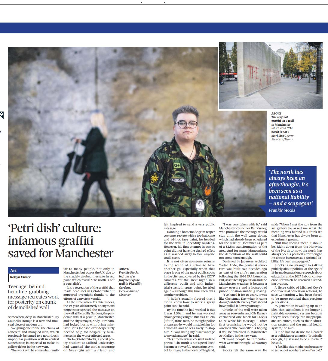 Categories Uncategorized The Observer Post author By robynvinter321 Post date 20th Dec 2020 “Petri dish” culture: infamous graffiti saved for Manchester Share this: Click to share on X (Opens in new window) X Click to share on Facebook (Opens in new window) Facebook Like Loading... Related ← i newspaper → Sunday People