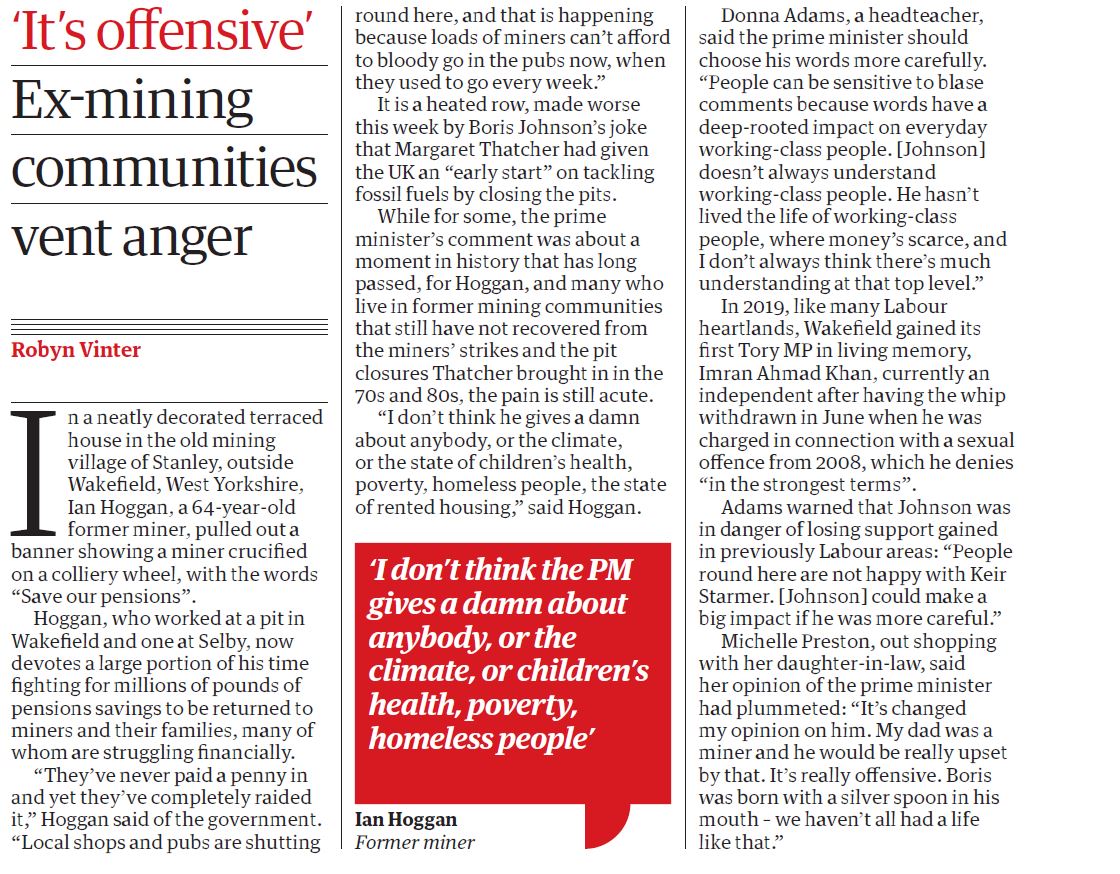Categories Uncategorized The Guardian Post author By robynvinter321 Post date 16th Aug 2021 No Comments on The Guardian ‘It’s offensive’ Ex-mining communities vent anger Share this: Click to share on X (Opens in new window) X Click to share on Facebook (Opens in new window) Facebook Like Loading... Related ← The Guardian → The Guardian Leave a comment Cancel reply Δ
